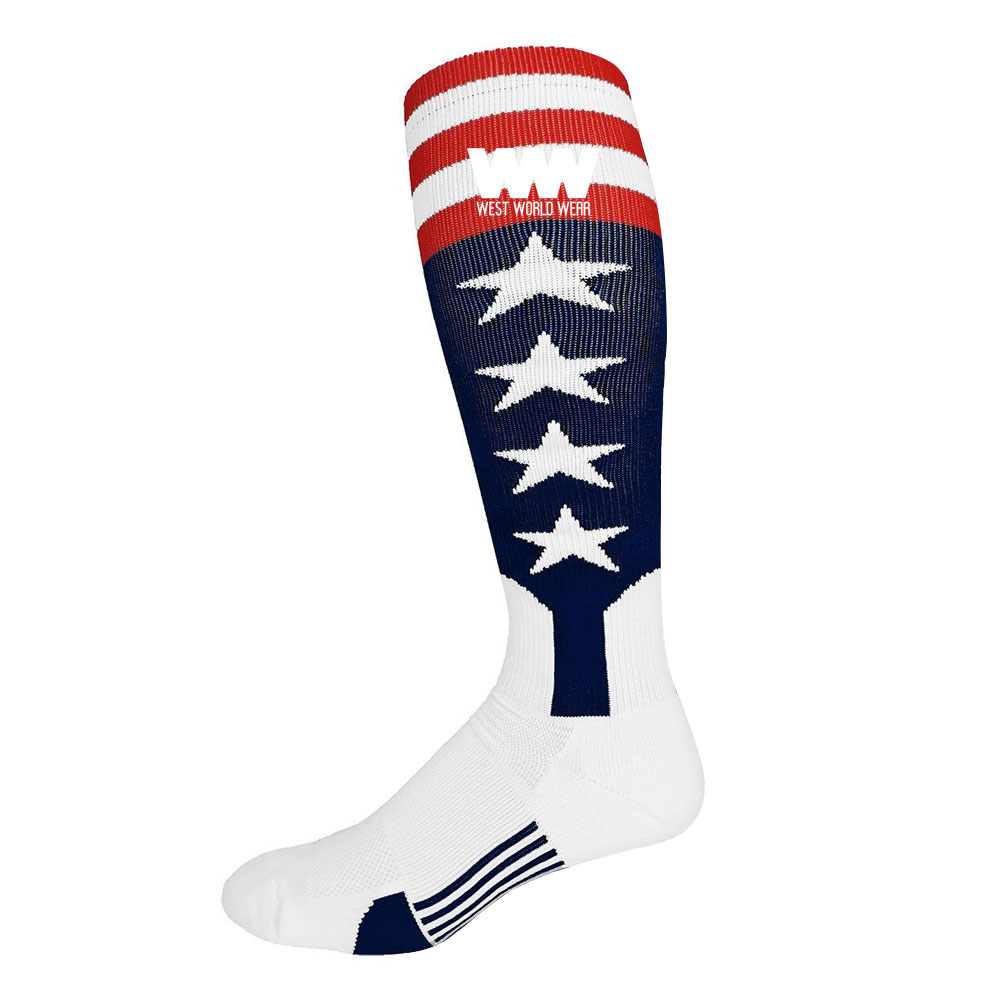 PERFECT USA FLAG BASEBALL or SOFTBALL STIRRUP SOCKS: The best of both worlds - a cool patriotic baseball stirrup knit into a sock! Show your enthusiasm for the USA with this pair of USA Flag baseball stirrup socks!